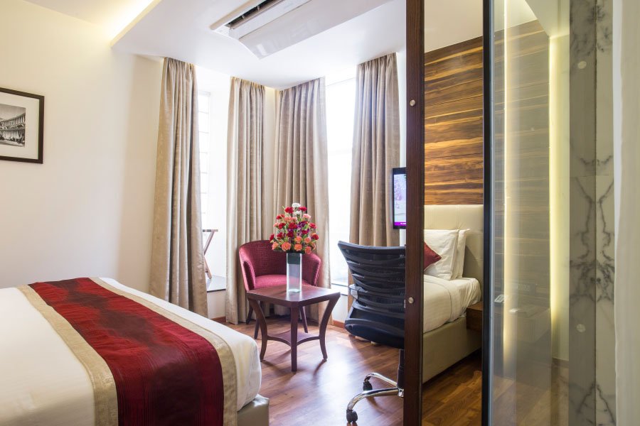 A niche of comfort in the bustling pocket of Connaught Place, the Executive Rooms have been designed in different shades of beige and accentuated by warm colours. These rooms are furnished with electronic safe, high speed Wi-Fi, comfortable beddings. You can also enjoy complimentary drinks and meal for two in our club next to the hotel.